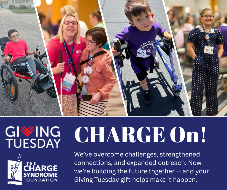 Every year since its inception, Giving Tuesday has brought people together to support the causes that they care most about. This year, we hope that you will support the CHARGE Syndrome Foundation and our CHARGE On! campaign.