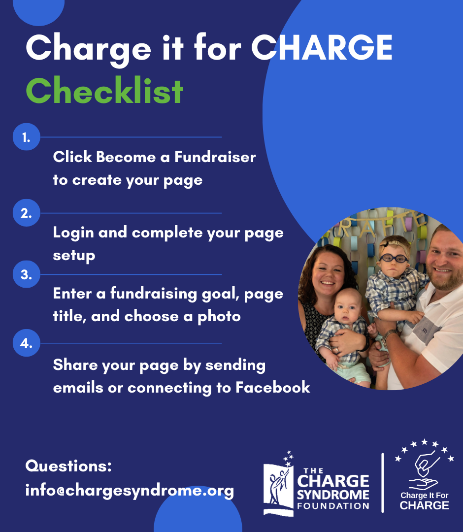 Charge It for CHARGE is our Foundation’s year-round fundraising platform. Help us continue the work to make the world a better place for all individuals with CHARGE syndrome and their families.