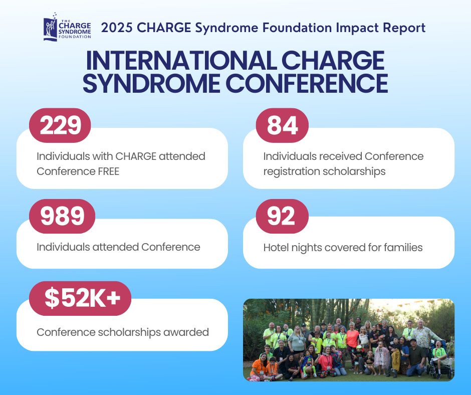 It has been a landmark year for the CHARGE Syndrome Foundation. In fact, we broke all-time Foundation records in conference scholarships and program awards this year, reaching more families than ever before and expanding our impact in ways we are incredibly proud of.