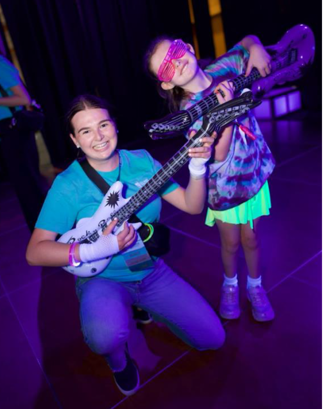 I first met Blakely (on the left) at camp during the 2023 conference. At the time, Blakely was content curled up with a blanket in her wagon with her iPad. Now, just two years later, Blakely is almost unrecognizable. Her language skills have exploded, and she is one of the fastest signers I know! We had the best time dancing the night away at the glow party.