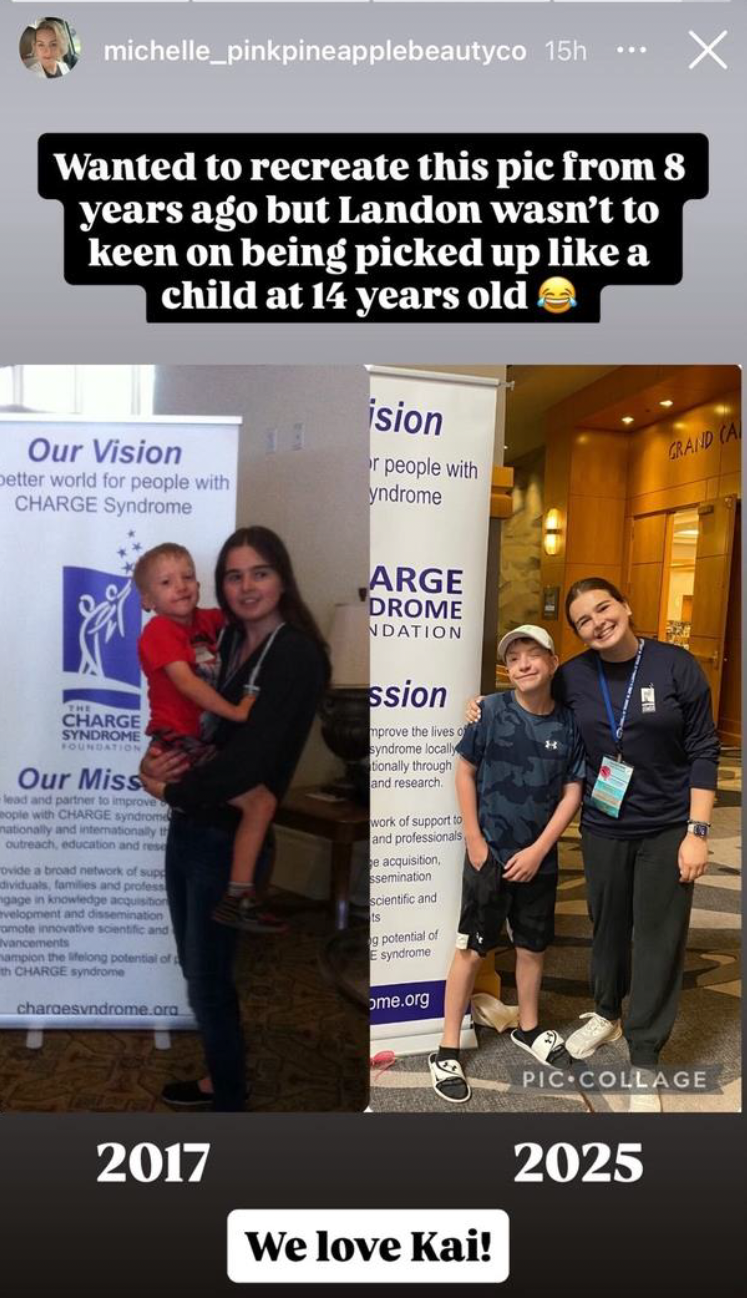 It feels appropriate to conclude my reflection with a collage made by MichelleD’Agostino (on the right). I first met Landon D’Agostino and his family back in 2015 at my second CHARGE conference. Landon was just four years old, and his two younger brothers, Colby and Blake, were two. We instantly bonded and when I learned that the D’Agostino’s lived just outside of Boston, we stayed in touch, coordinating visits between conferences. Over the past ten years, I have had the pleasure of watching Landon grow into an aspiring scientist and video game aficionado. I can’t wait to see all he will achieve!